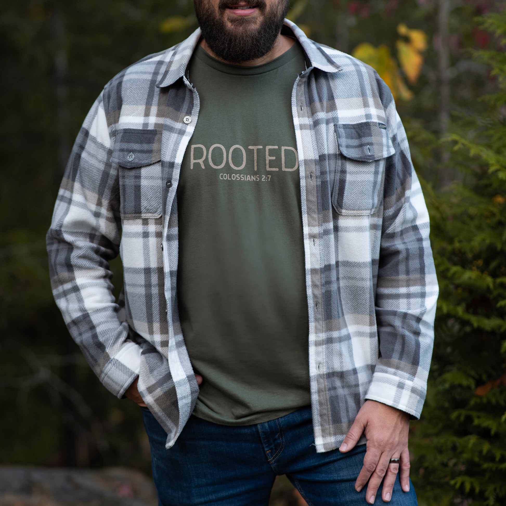 Stay rooted in truth with the Rooted T-Shirt. Inspired by Colossians 2:7, this minimalist Christian tee is a daily reminder to stay grounded in Christ, built up in faith, and strong in spirit. Soft, breathable, and flattering for all, it’s perfect for everyday wear and faith-filled living.